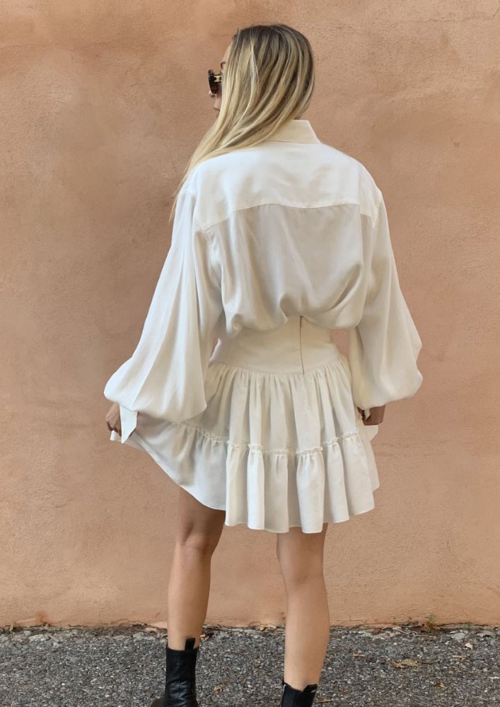 La chemise Dani adopte une coupe oversize, les poignets sont à nouer apportant aux manches du volume, la patte de boutonnage est dissimulée, pour une silhouette épurée.